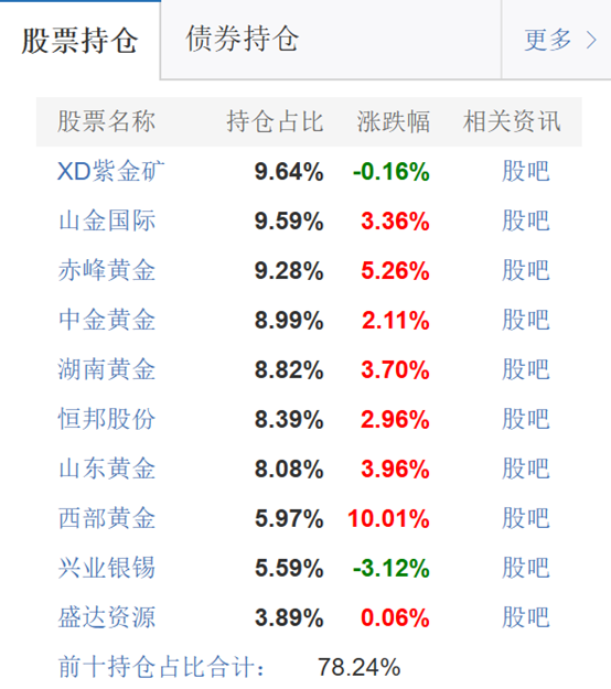 华富永鑫灵活配置混合A更是成为了一只“贵金属主题基金”,自2023年起十大重仓股便主要集中于黄金股。截至今年一季度末,该基金的十大重仓股为XD紫金矿、山金国际、赤峰黄金、中金黄金、湖南黄金等,且前十大重仓股持仓占基金资产净值比例接近八成。今年以来,该基金涨幅已经达到40.8%。